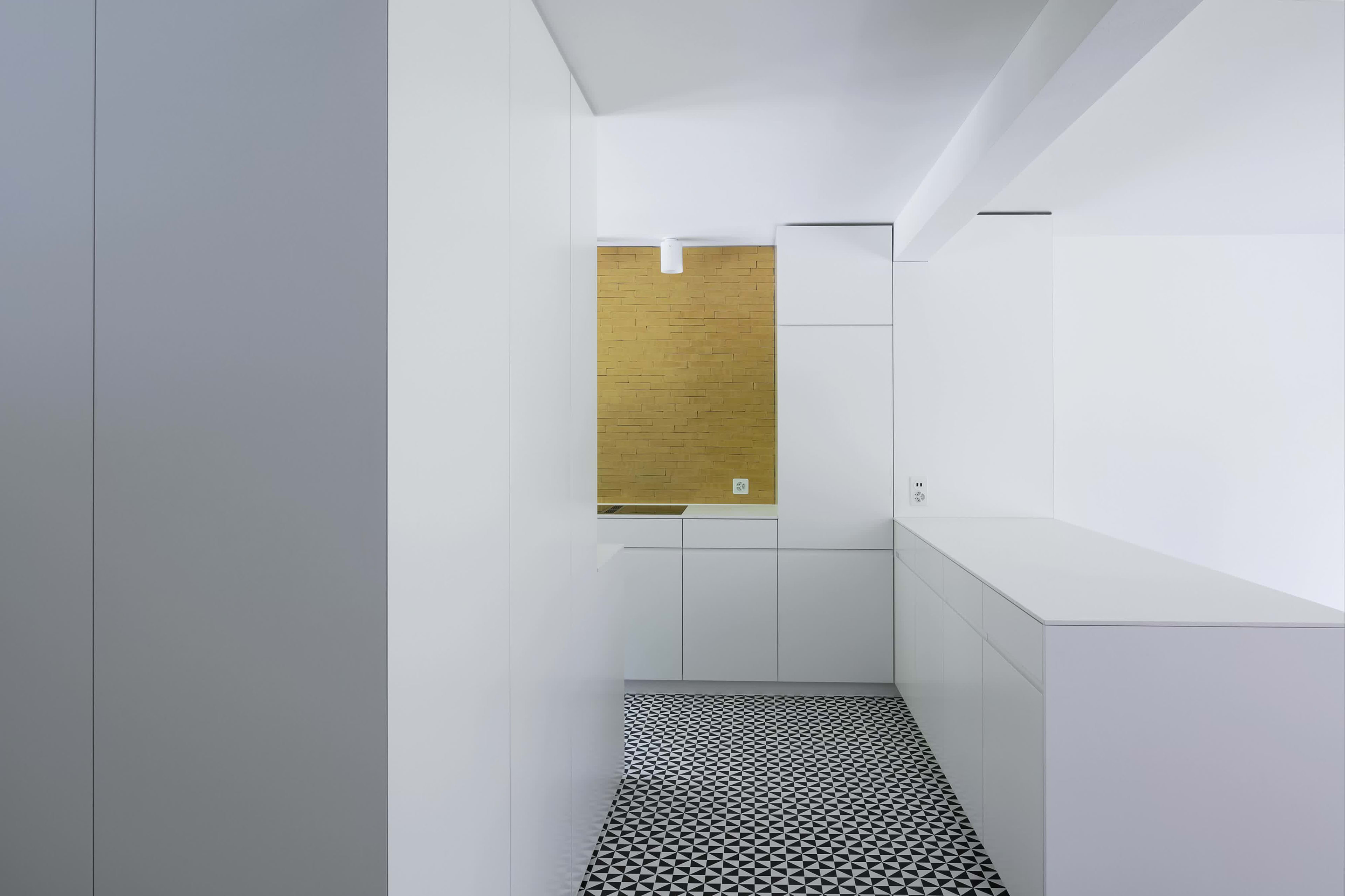Ein neues Möbel, mit Küche, Garderobe, Reduit und Gäste-WC, legt sich im Flur als durchlaufende Raumschicht vor den neuen grossen Wohnraum.