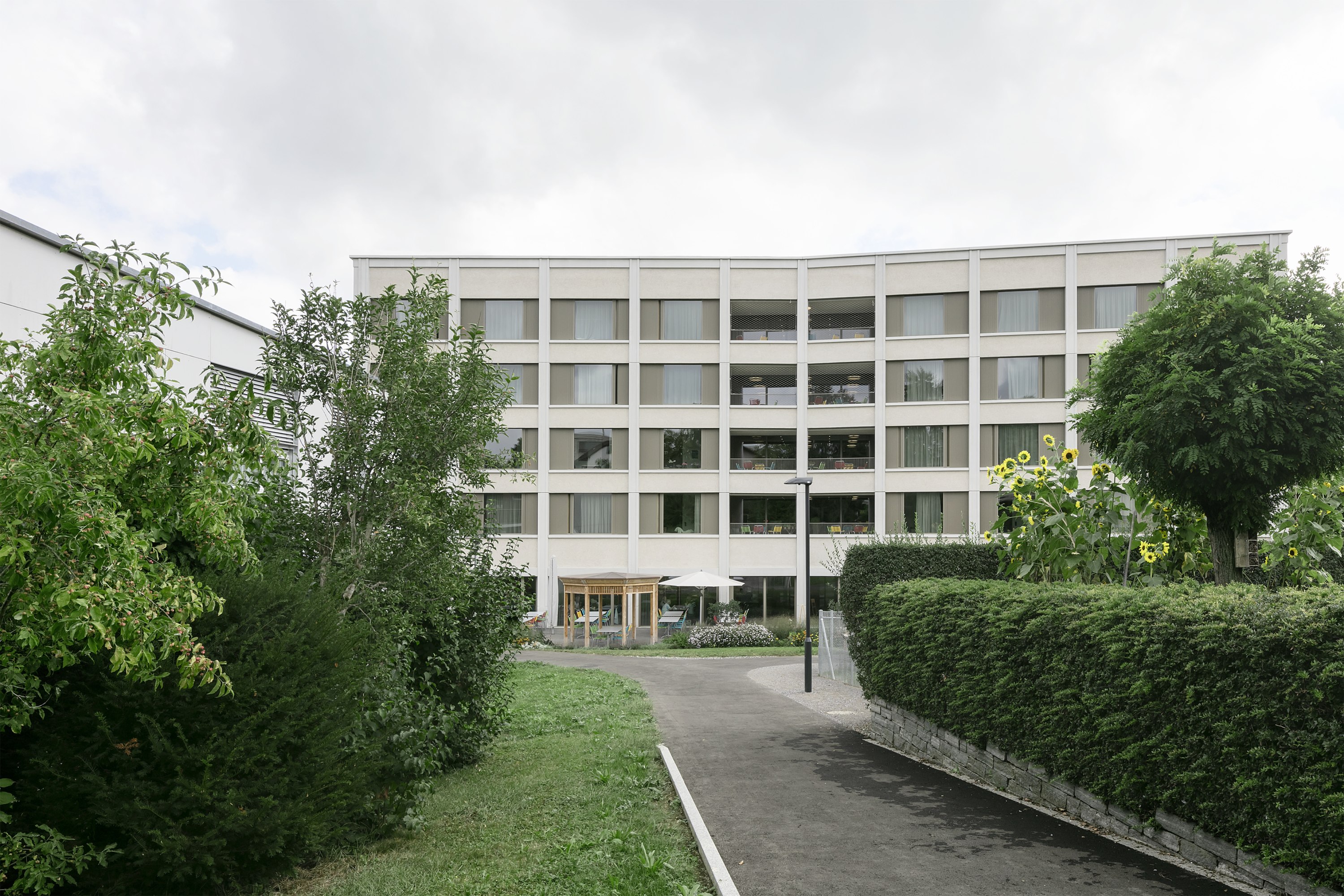 Der in den 1970er-Jahren erstellte Vorgängerbau, das Alters- und Pflegeheim «Haus zum Seewadel», entsprach nicht mehr den Anforderungen an eine moderne Pflegeeinrichtung, so dass es für den Ersatzneubau rückgebaut werden musste. Die unmittelbar daran anschliessende Bibliothek wurde freigestellt. Aufgrund der vorgegebenen Rahmenbedingungen wurde der Neubau als Solitär geplant. Die konkav und konvex geschliffenen Aussenkanten des Volumens reagieren auf die Situation und bilden zugleich die Funktionen des Hauses ab.